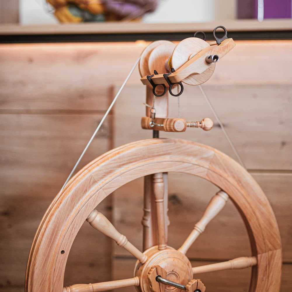 Telares, ruecas, hilos, fibras, agujas, husos, carretes, lana y seda, plantas de teñido y asistentes. Tenemos todo lo necesario para que aprendas a hacerlo.
