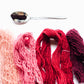 100gr de cochonilha dá para tingir aproximadamente 3kg de fio num tom médio.