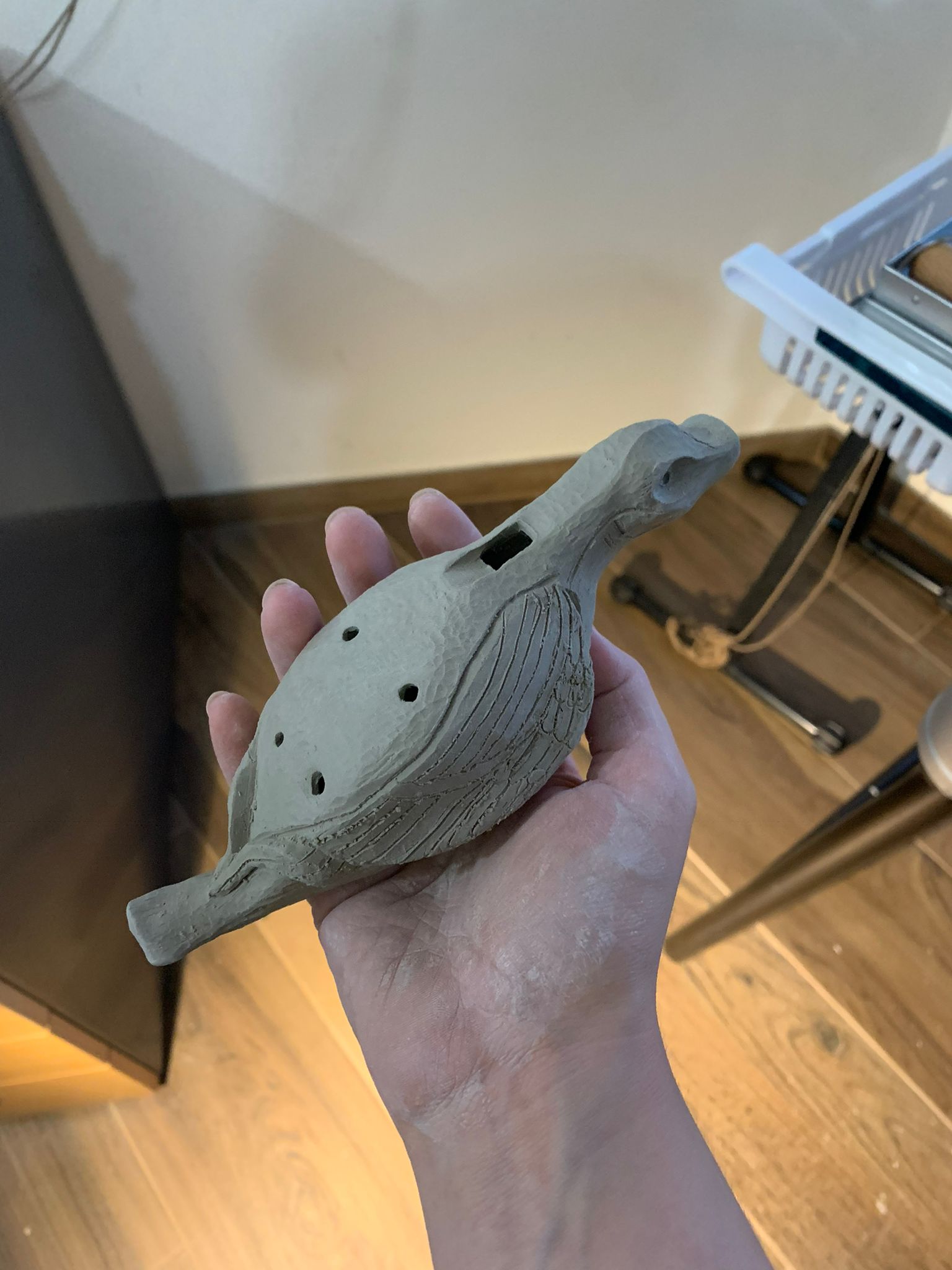 - Conformação de uma ocarina a partir de uma bola de barro que será ocada e modelada com base nos modelos fornecidos.